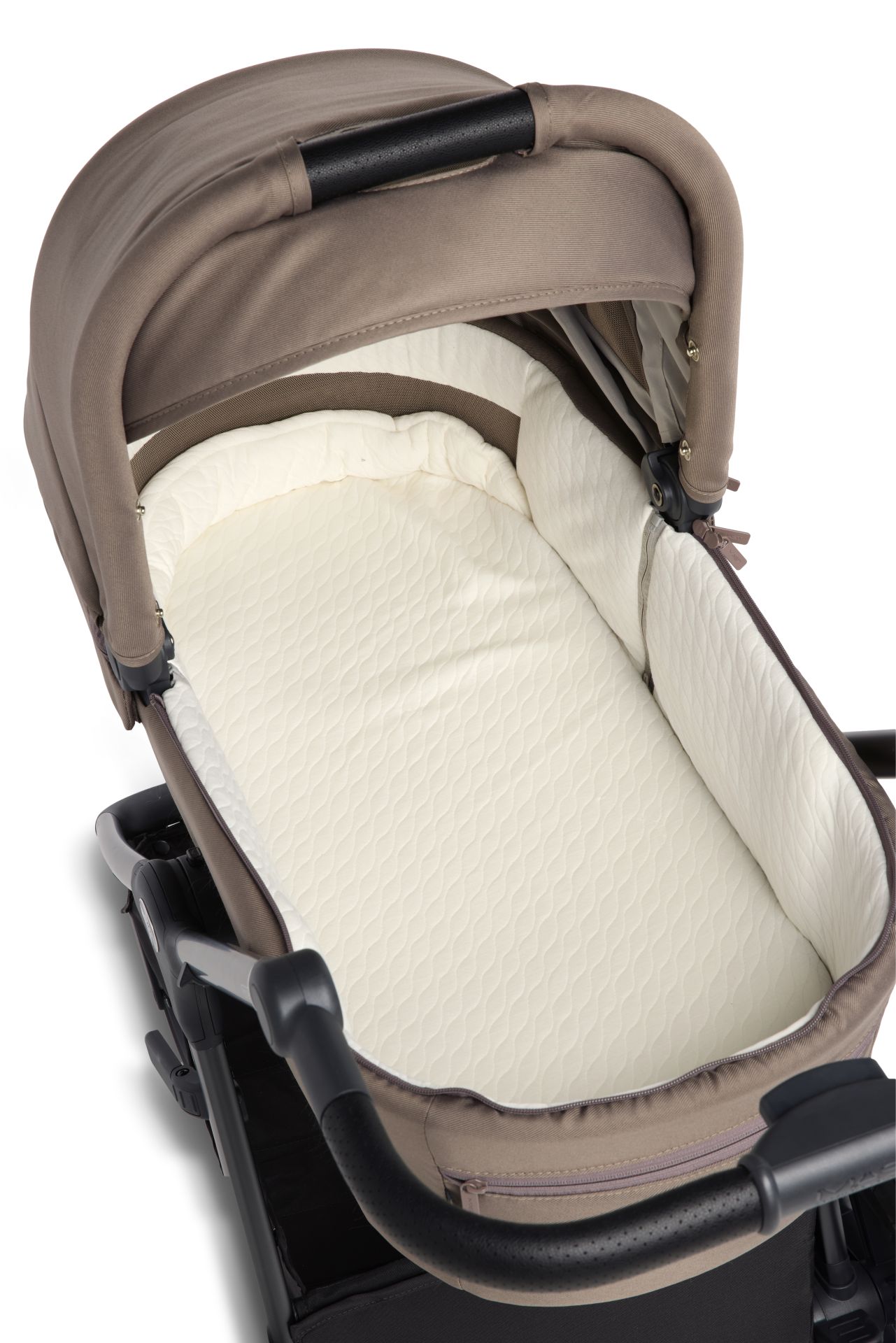 Die mitgelieferte Babywanne ist ausgestattet mit einer sehr bequemen und luftdurchlässigen Matratze.Die Wanne ist bestens belüftet, um eine optimale Luftzirkulation zu gewährleisten.Diese sorgt für einen erholsamen und sicheren Schlaf.Du kannst sie am Boden, am Dach und im Kopfteil der Babywanne öffnen.Der integrierte UV-Mesh-Sonnenschutz bietet zusätzlichen Schutz vor schädlichen Sonnenstrahlen.Die Wanne kann ganz einfach, mit den mitgelieferten Adaptern, am Gestell des Kinderwagen befestigt werden und mit Memory Buttons wieder abgenommen werden.
